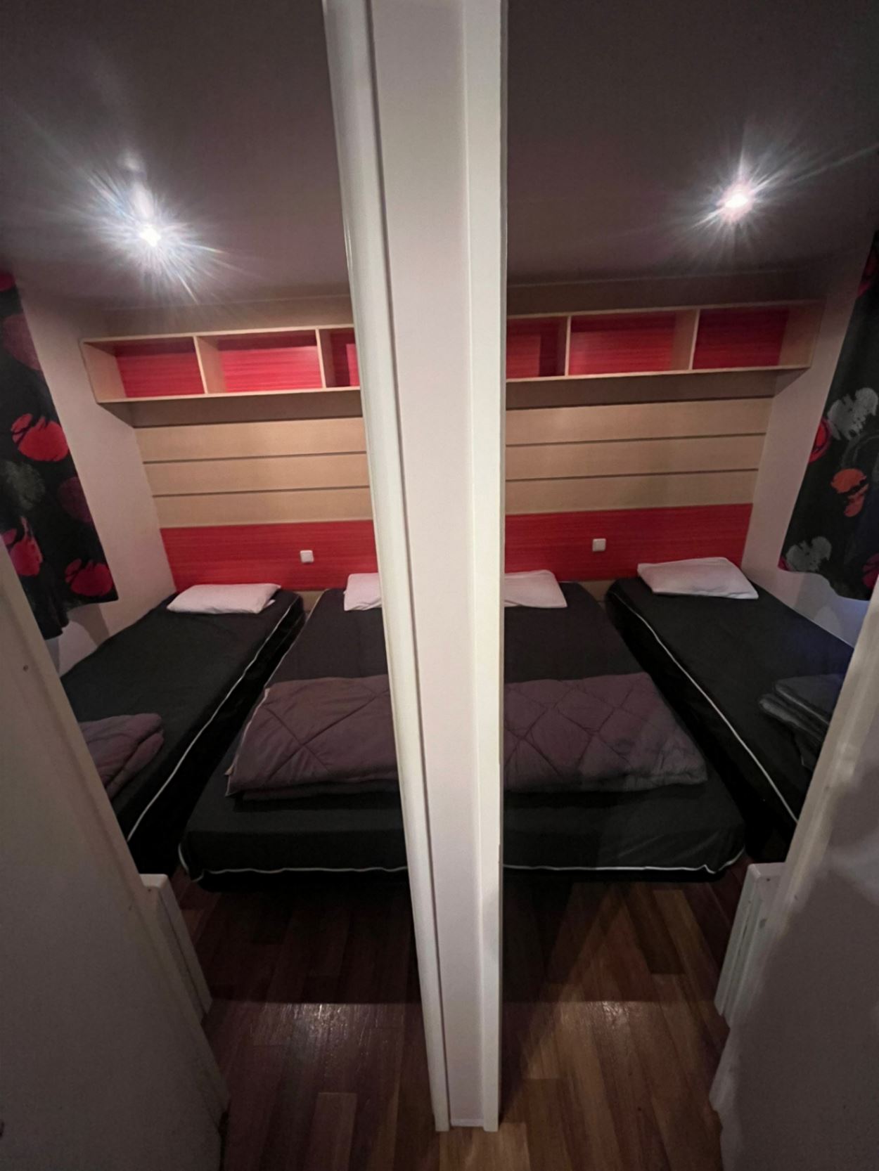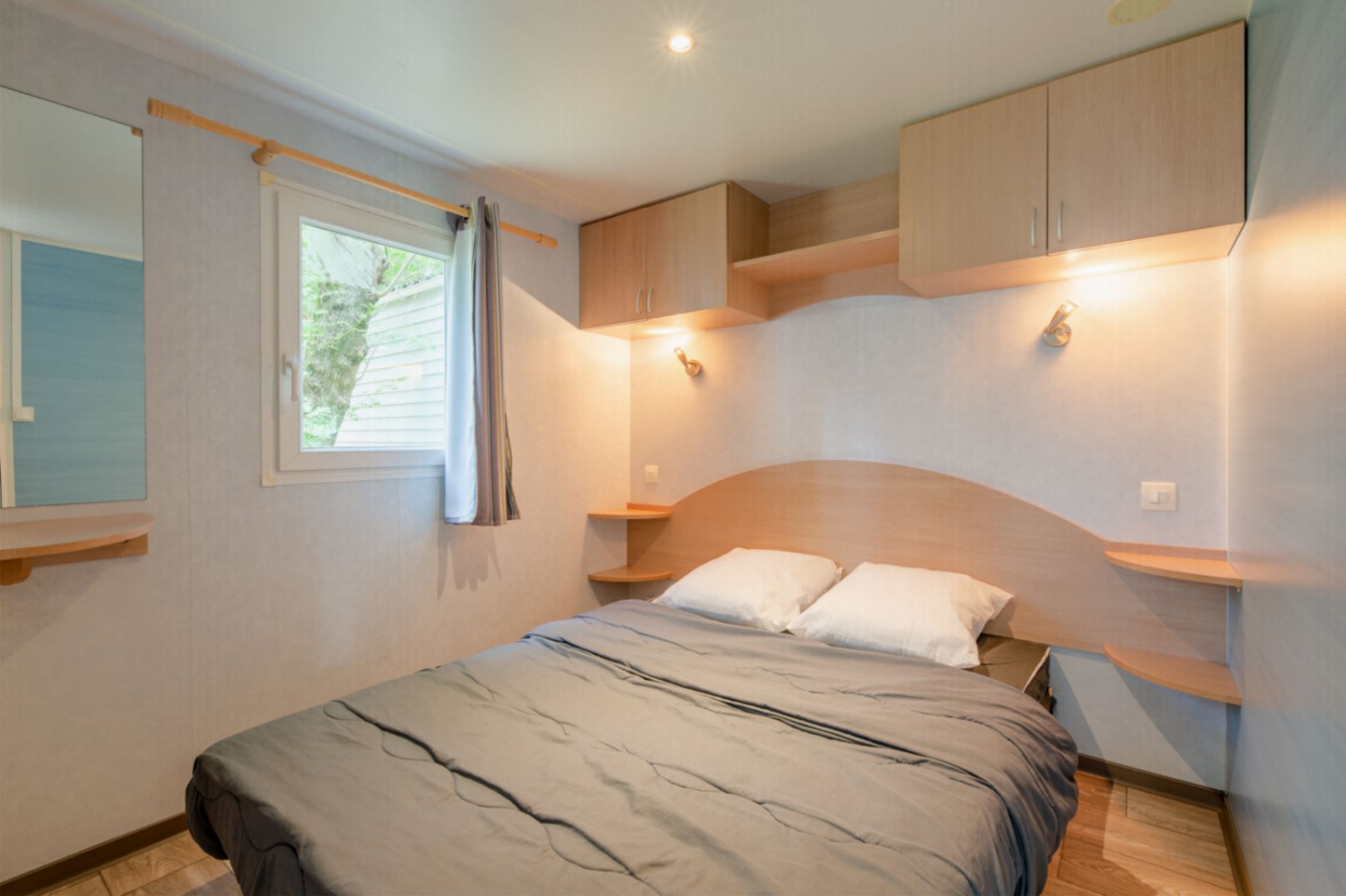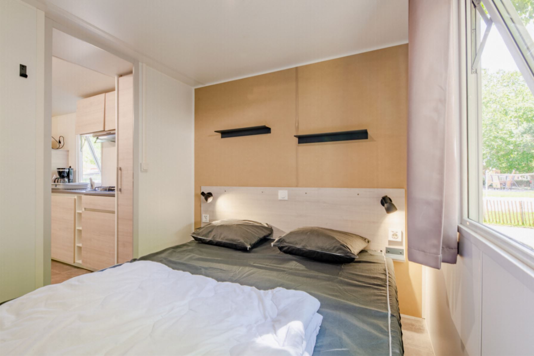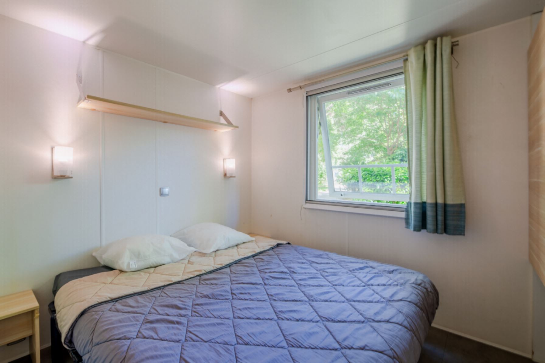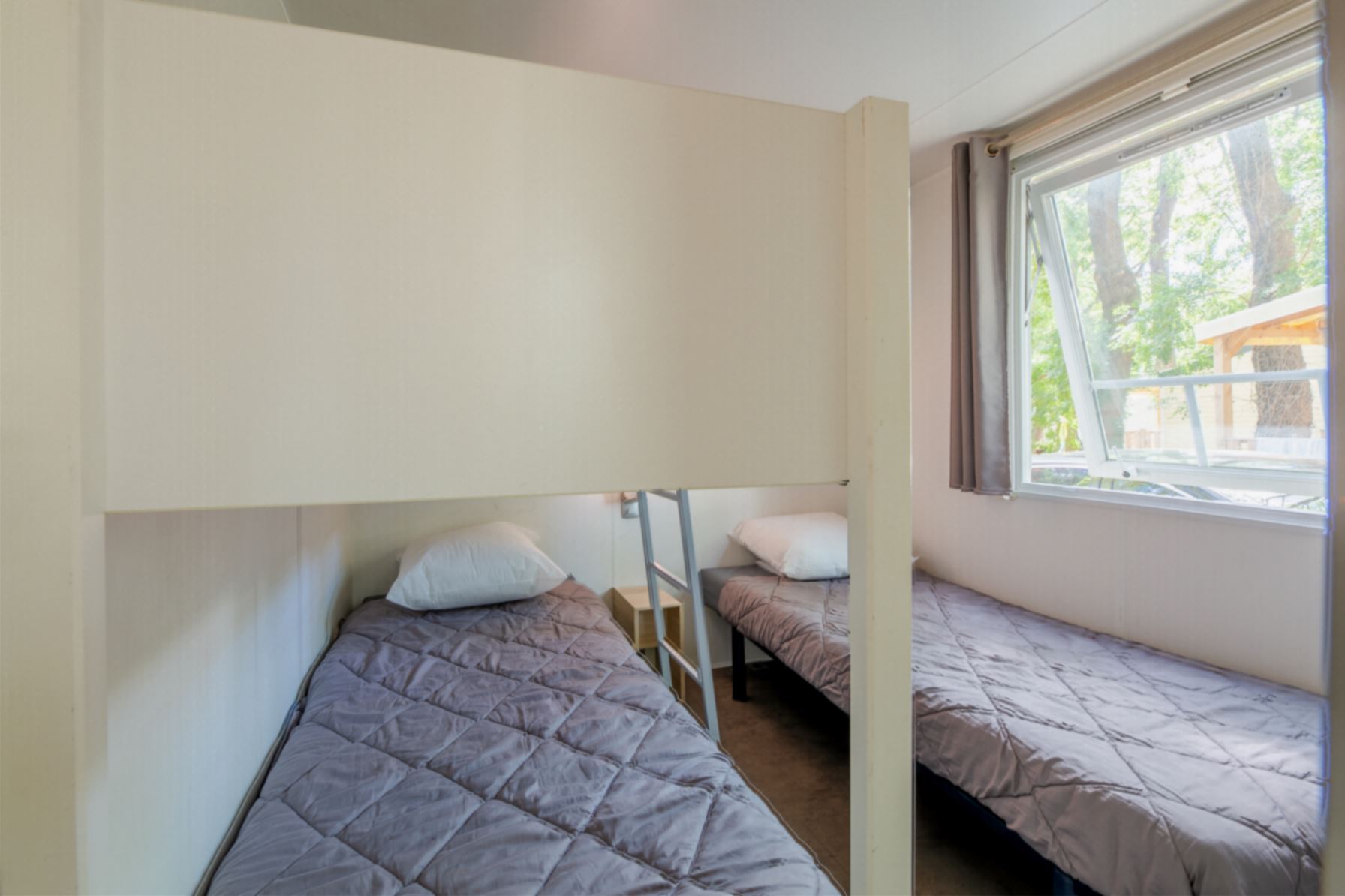 Mobil home climatisé de 20 m², composé de 2 chambres, pouvant accueillir jusqu'à 4 personnes.